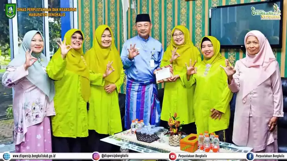 Dispersip Bengkalis-- Kepala Dinas Perpustakaan dan Kearsipan Tuan Guru Haji Ahmad Kabupaten Bengkalis, Hendrik Dwi Yatmoko, S.Sos, MT didampingi Kasubbag Umum dan Kepegawaian Siti Azizah, SKM dan Kepala Bidang Pengembangan Perpustakaan dan Pembudayaan Kegemaran Membaca (P3KM), Rospelia, SH, menyambut baik atas kunjungan Pusdatin Puanri ke Dispersip Kabupaten Bengkalis, Senin (28/7/2025) sekitar pukul 09.30 WIB sampai dengan selesai.
