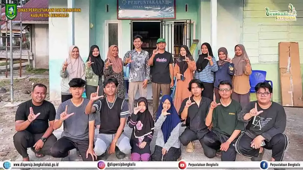 Dispersip Bengkalis-- Kepala Dinas Perpustakaan dan Kearsipan Tuan Guru Haji Ahmad Kabupaten Bengkalis, Hendrik Dwi Yatmoko, S.Sos, MT melalui Heru Hardianto, S.Sos. selaku Pustakawan Ahli Pertama, melakukan Pembinaan Pengelolaan dan Program Kerja Literasi bersama Mahasiswa KKN Literasi Universitas Riau, di Perpustakaan Insan Barokah, Desa Damai, Kabupaten Bengkalis, Provinsi Riau, Kamis (26/6/2025). (Tim Dispersip Kabupaten Bengkalis).